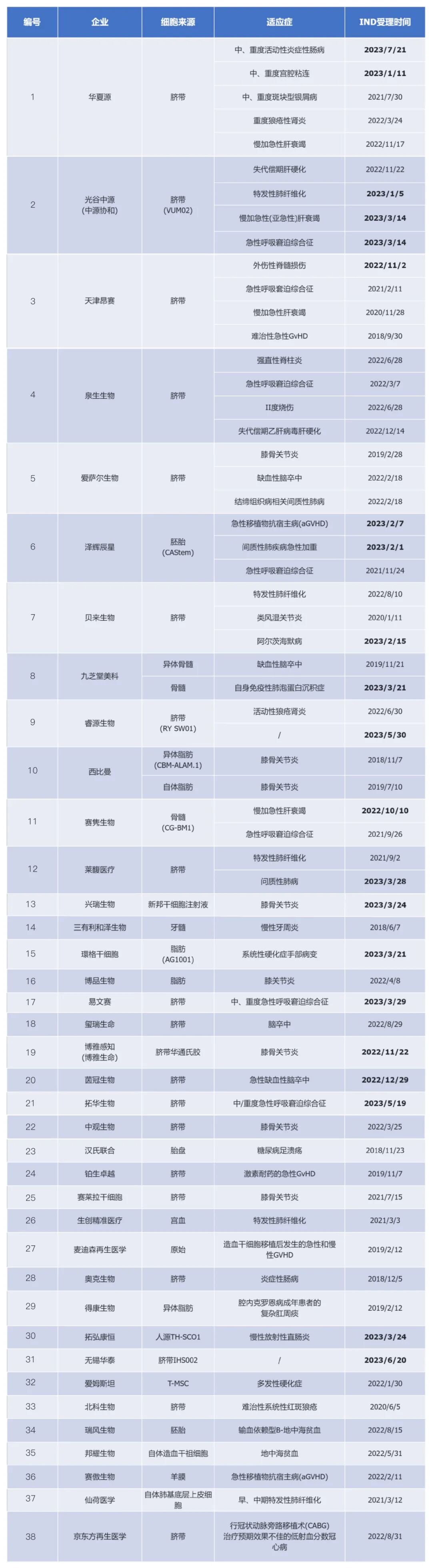 在政策推动下,我国干细胞产业迅速扩张,干细胞新药申报也迎来历史性井喷!据国家药监局药审中心(CDE)官网显示,截至2023年8月,全国已有近40家企业,60多款干细胞产品提交IND审批,足以见得我国干细胞产品的研发力度日益增强。