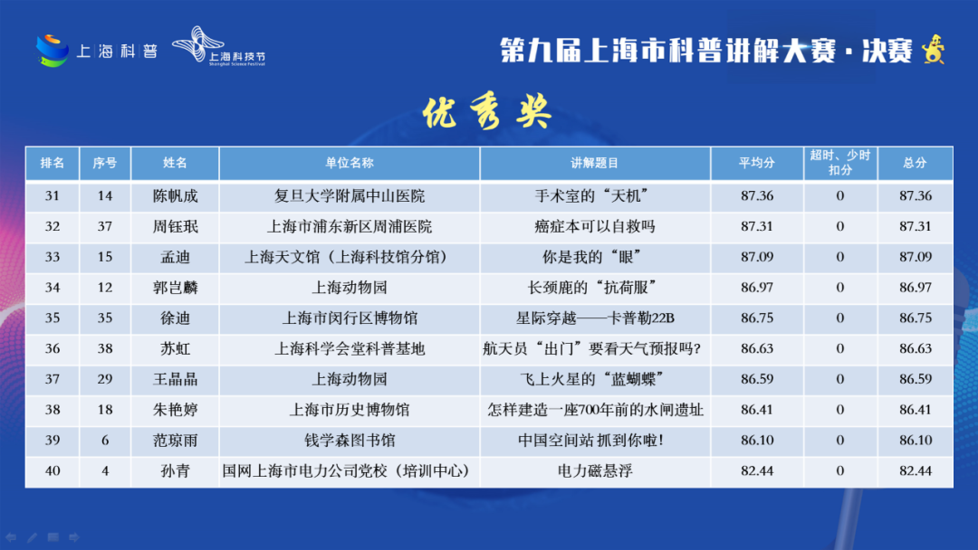 △ 2022年上海市科普讲解大赛决赛获奖名单