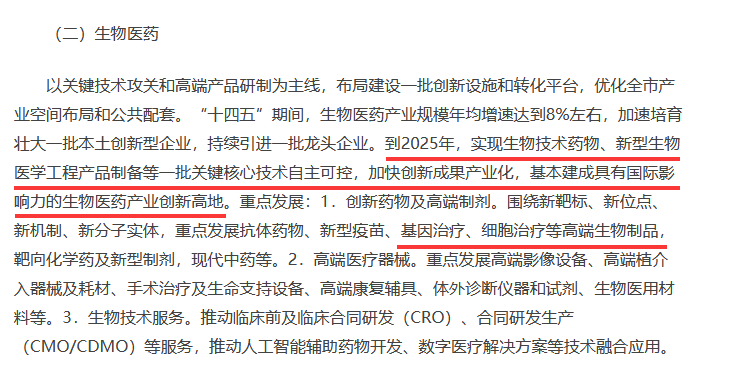 2021年7月21日,上海市人民政府办公厅正式发布《上海市战略性新兴产业和先导产业发展“十四五”规划》。其中特别提到,“推动基因编辑、拼装、重组等技术发展,构建可生产药物、化学品、天然产物、生物能源的细胞工厂,推动合成生物学技术工业应用。深化体细胞重编程、人工组织器官构建等技术研发,推动干细胞修复病理损伤、组织器官再生等细胞技术临床应用。”