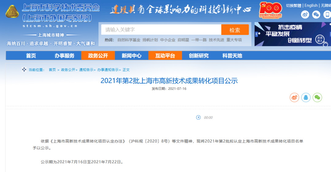 △ 2021年第2批上海市高新技术成果转化项目公示